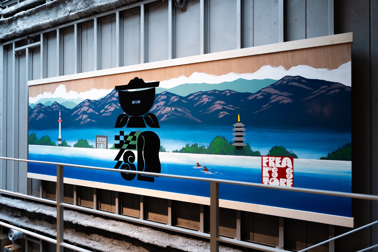 今回の作品では、京都の自然とFREAK’S STORE京都のロゴを融合させた風景が表現されています。
