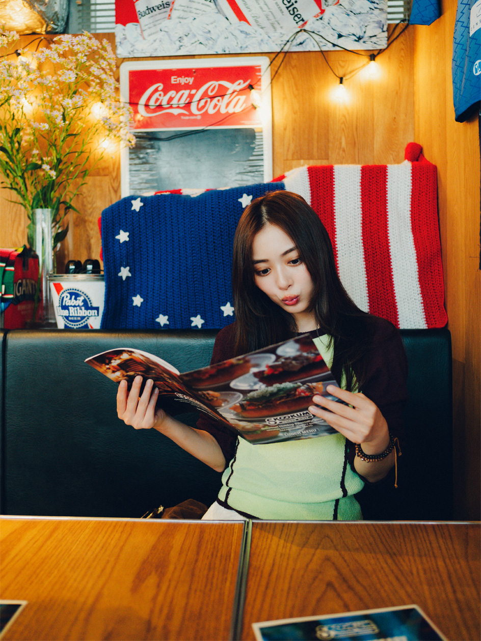 ミントの緑色が今日のトップスとばっちり合っています。