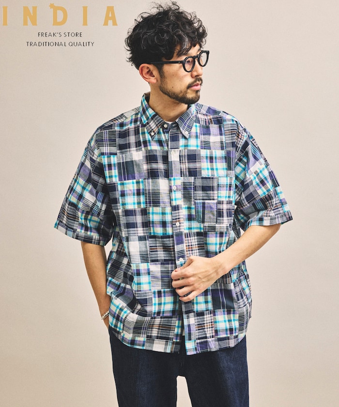マドラスチェック パッチワーク ボタンダウンシャツ ショートスリーブ