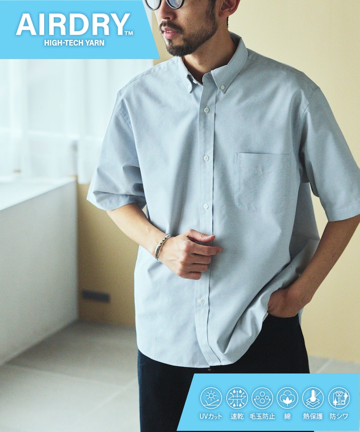 ●AIRDRY高機能素材を使用した、ショートスリーブのボタンダウンシャツ