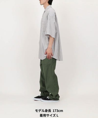 いいリラックス感の漂うシャツ。店頭で一目惚れして購入しました。即、夏のヘビロテアイテム入り。色違いでも欲しいくらいです。このシャツの持ってる雰囲気的に、170cm〜ならLで着る方がいいと思います。