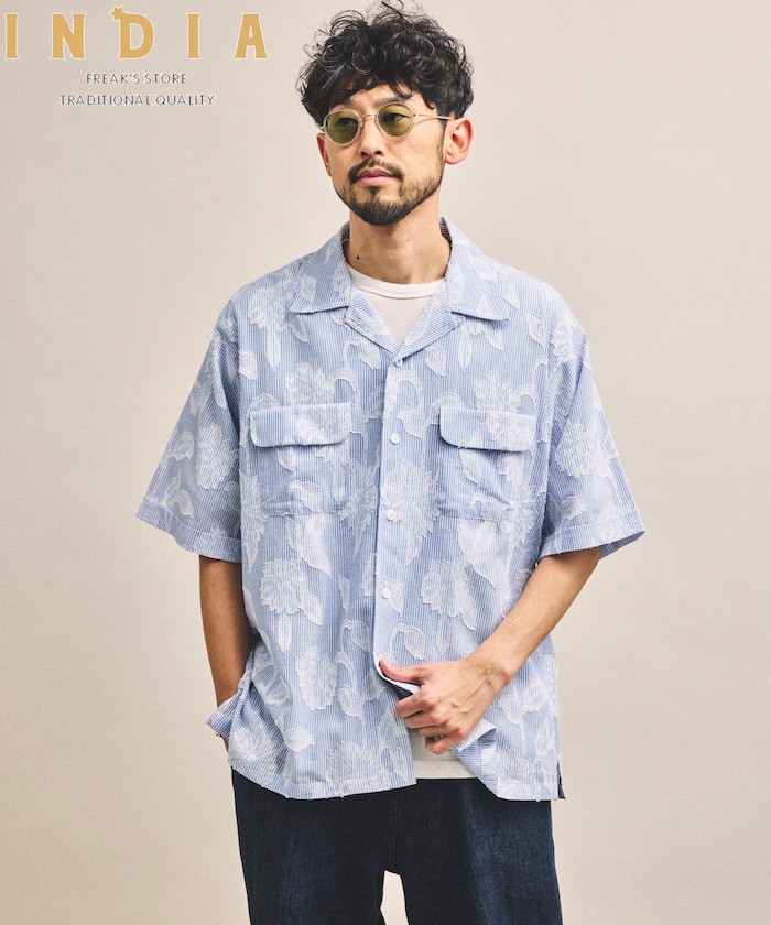 リラックスフィット カットジャカード ストライプ オープンカラーシャツ ショートスリーブ