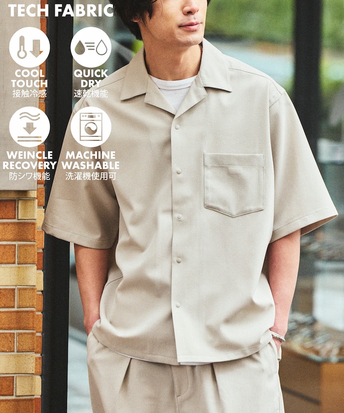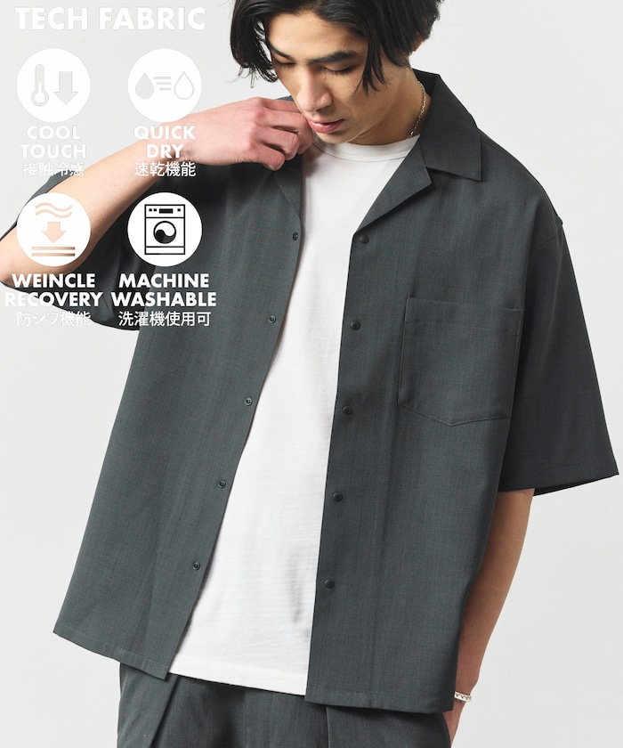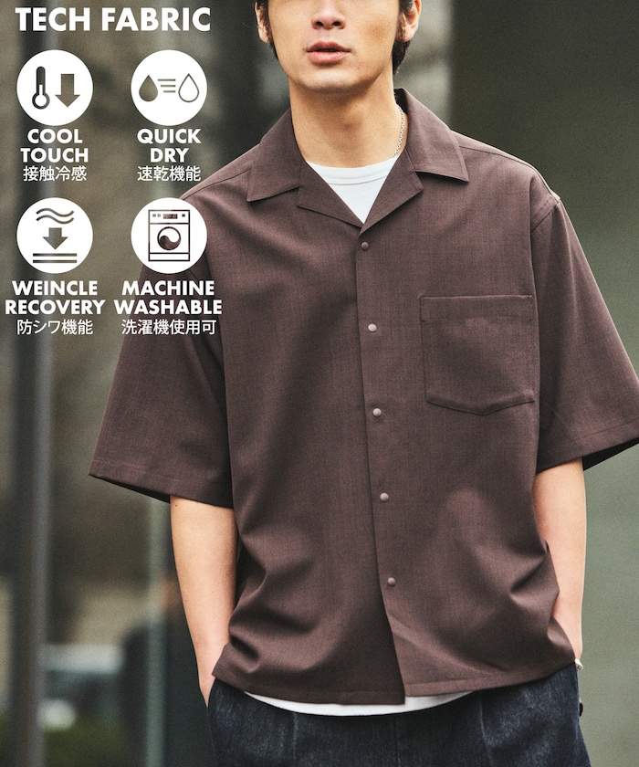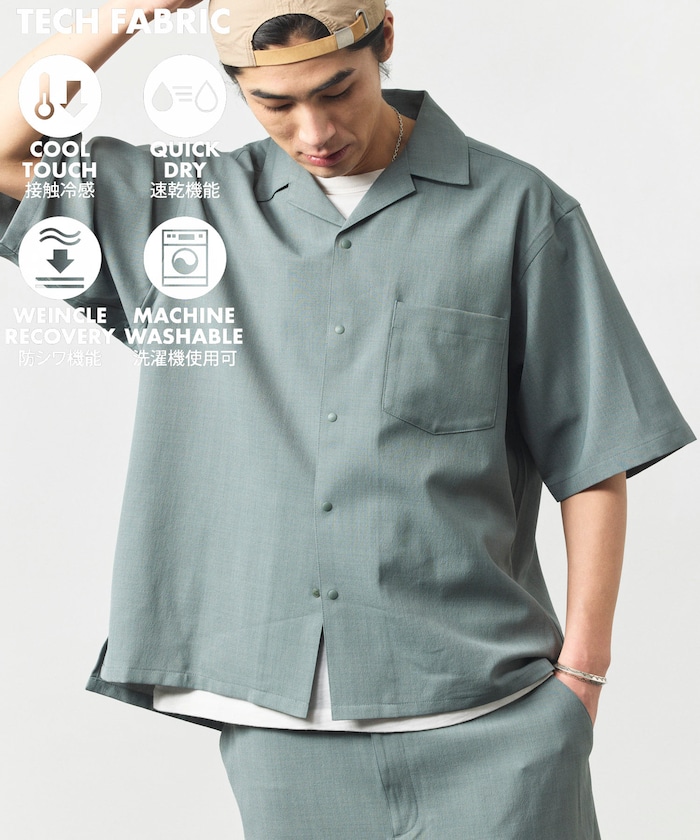 速乾素材 リラックスフィット オープンカラーシャツ ショートスリーブ リネン風