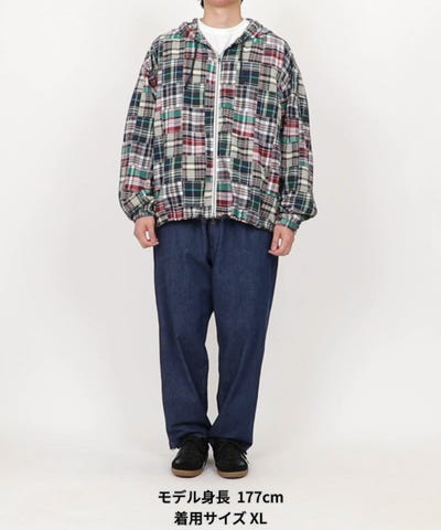 ●インド生産の先染めパッチワークマドラスチェック生地を使用したジップパーカー