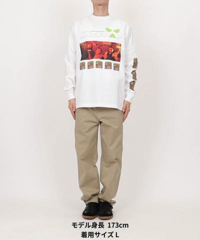 映画を観ると何のシーンかわかりますが、フロントはKNEECAPのメンバー、バックは同じ場面のメンバー3人が粘土の人形になったシーンをデザイン。何のシーンなのかはぜひ映画をご覧ください。まわりに配された“猿のイラスト”にも意味があります。