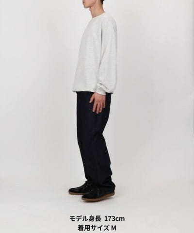 ●裾にはゴムスピンドルを備え、シルエット調整が容易なため、1枚でラフに着ても、インナーとして重ねてもバランスよく着こなせる万能な一着