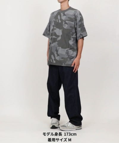 ウッドランドカモ柄の総柄プリントになります。プリント加工と生地起毛を施してから製品洗いをしてフェード感を演出しています。