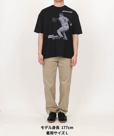 MLBで活躍する日本人プレイヤーの全身を捉えた、引きのフォトグラフィックを使用したコラボレーションTEE。