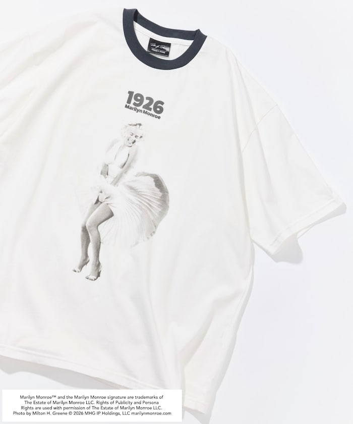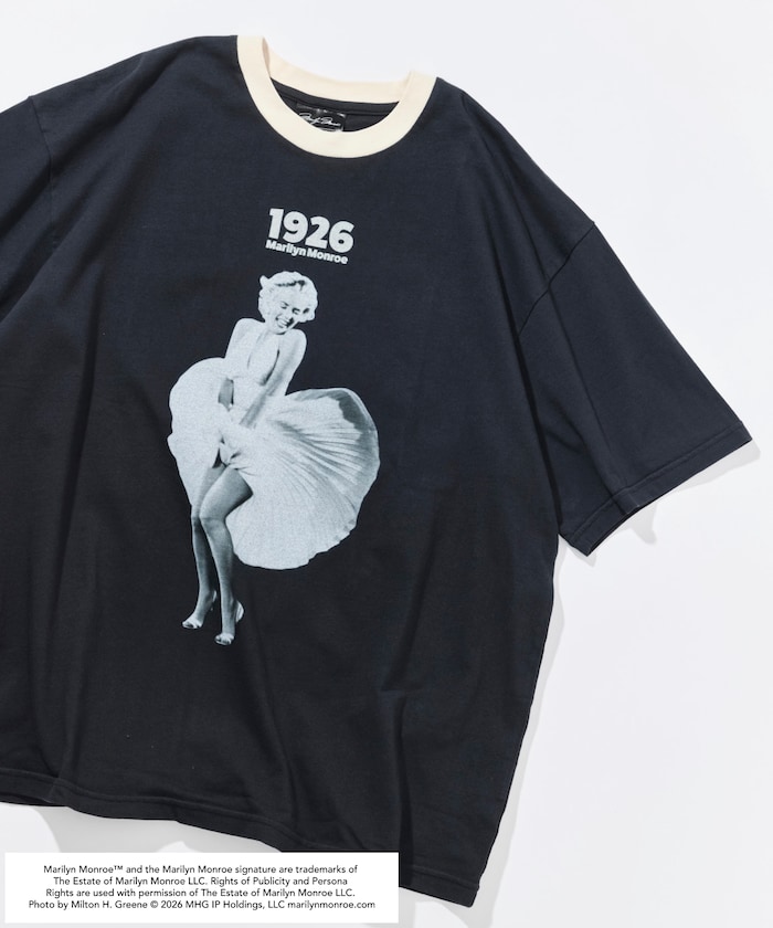 フロントにはMarilyn Monroeのフォトプリントを配し、クラシックな雰囲気がシンプルになりがちな夏のコーディネートに映える1着。