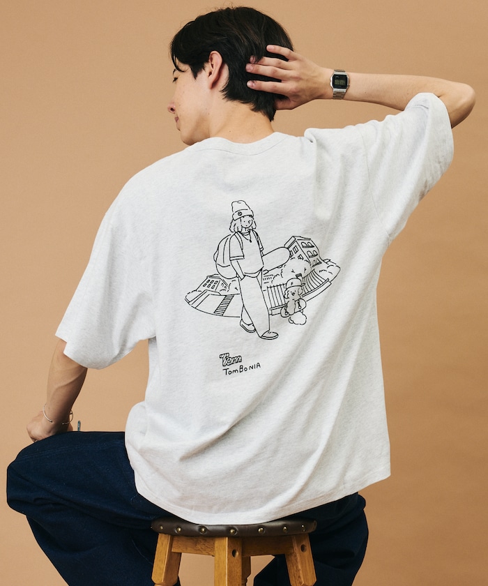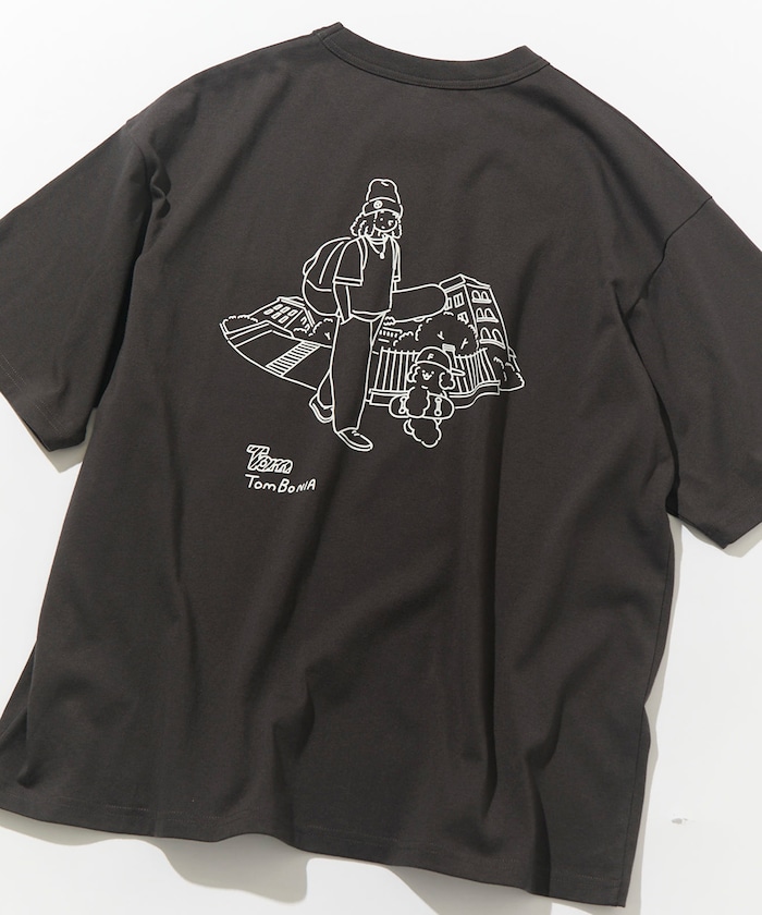 ●tombonia氏のイラストの中でも人気のスケートボードのイラストを落とし込んだバックプリントTシャツ