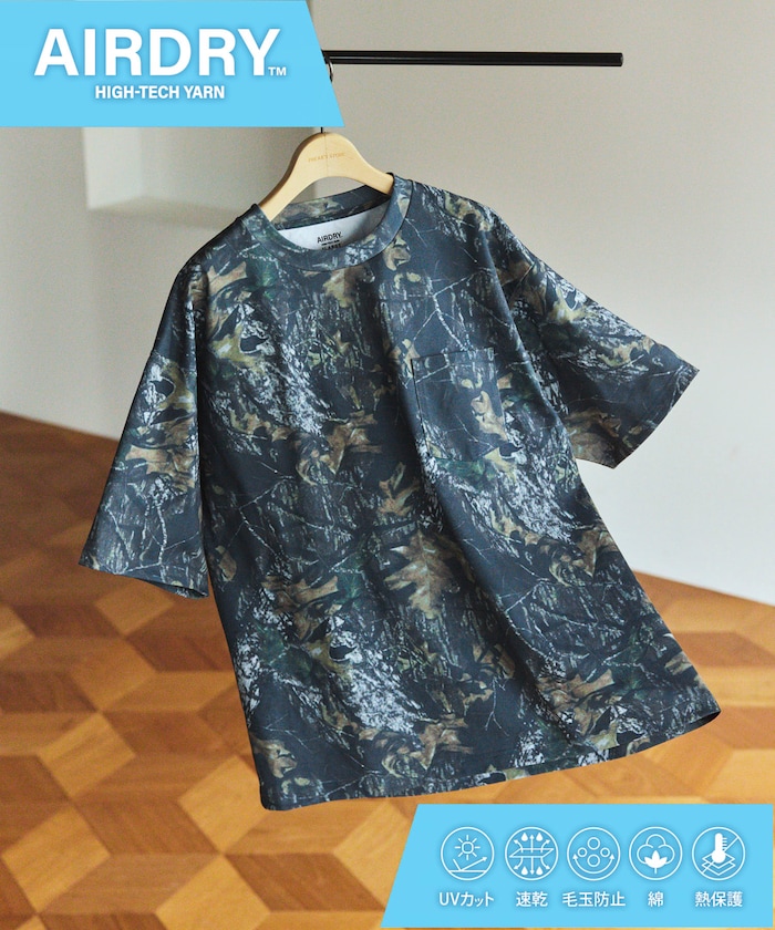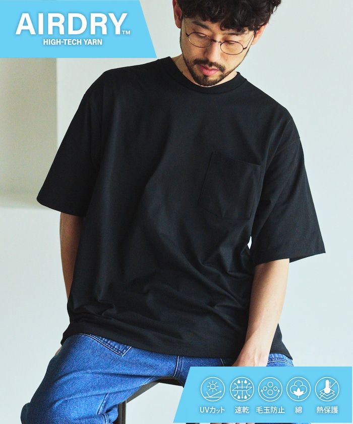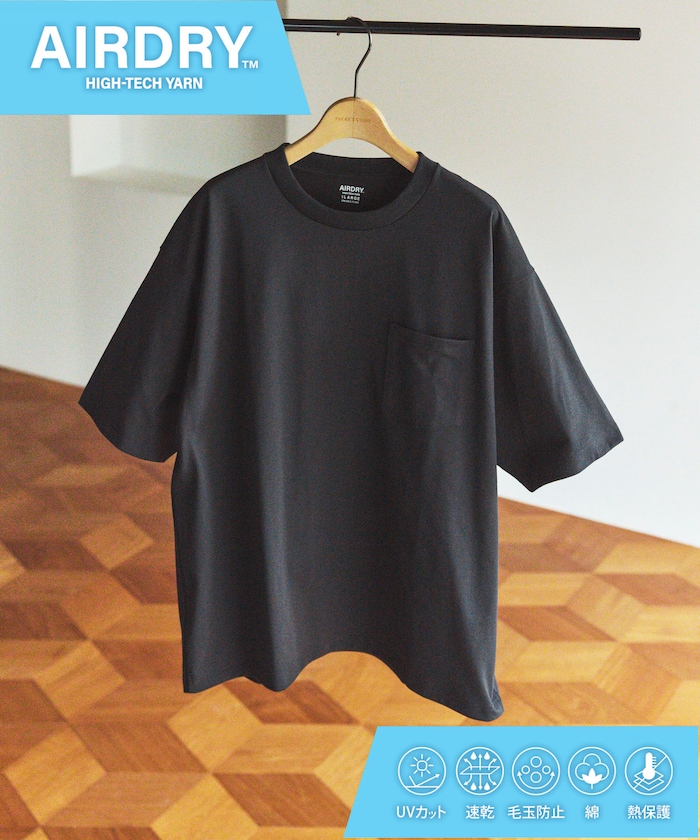 ●AIR DRY糸の特殊な糸構造により吸水速乾性・遮熱性(紫外線遮蔽率UPF50+)に優れ、紫外線ダメージから肌を守るUVカット付き