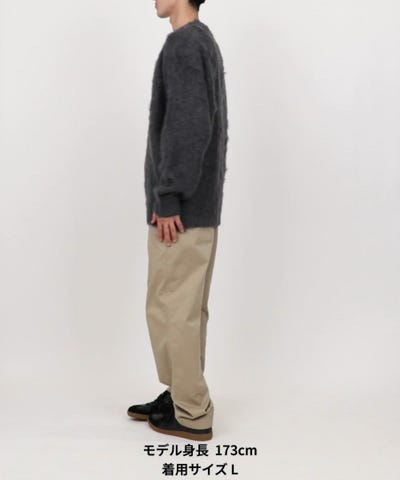 毛足の長いシャギー素材が印象的な、温かみのあるクルーネックニット