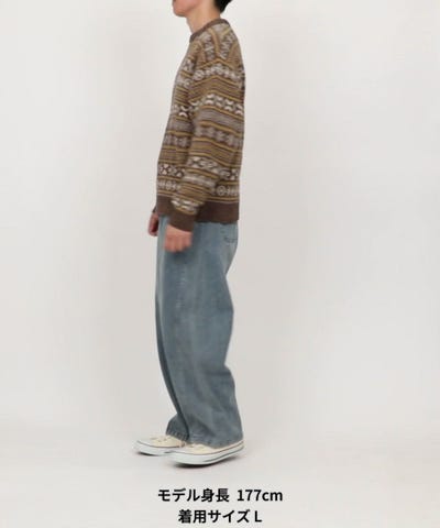 柔らかな風合いで着用しやすい総柄クルーネックニットが入荷しました。