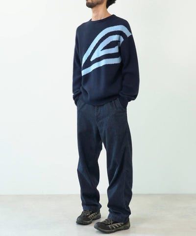 素材はアクリルですが厚手で目も詰まっているので真冬でも結構暖かそう。ややゆったりめのシルエットなので、スウェットパンツや太めのパンツとも相性良く着回しが利きます。ゆったり設計ではありますが、すごくルーズという程でもないので、レギュラーフィットを好む方でも通常サイズの選択で問題ないと思います。
