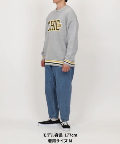 ●そのカレッジ風にデザインした「CHICKEN(チキン)」ロゴをジャガードニットに落とし込んだ。一見「CHIC(シック)」にも見えるところがポイント。