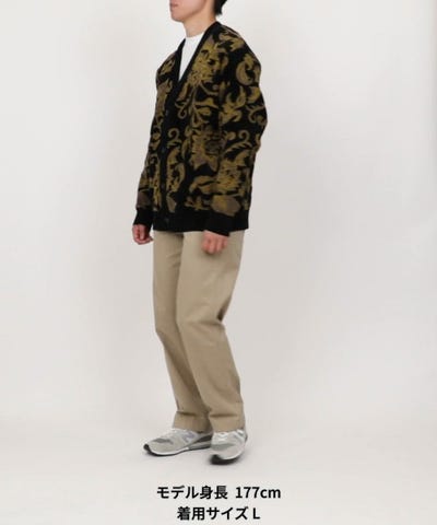 存在感のあるアイテムなので、インナーはシンプルにTシャツや無地のカットソーを合わせるのがおすすめです。ボトムスはデニムやチノパンなど、ベーシックなアイテムと合わせるだけで、カーディガンの柄が引き立ちます。また、スラックスと合わせて上品なストリートスタイルを楽しむのも◎。