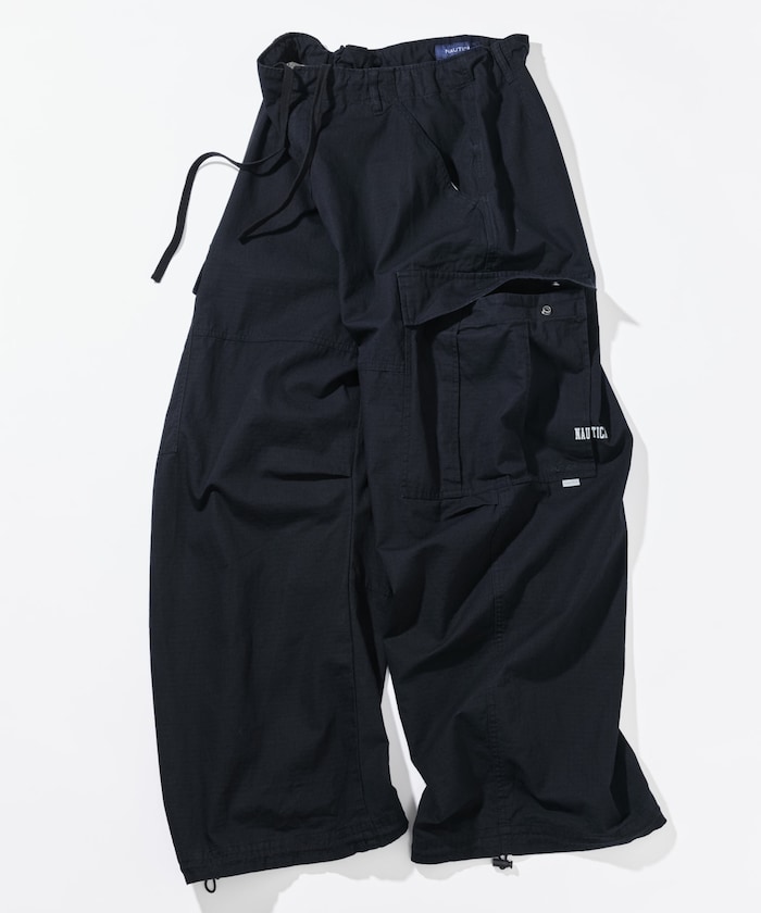 ●張りのあるリップストップ素材を使用した、存在感のあるカーゴパンツ