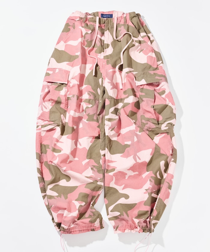 ウッドランドカモはミリタリーやストリートスタイルと相性が良く、ピンクカモはモノトーンやネイビーなど落ち着いた配色のトップスと合わせることで、コーディネートのアクセントとして活躍します。イージー仕様のウエストで快適な穿き心地を備え、デイリーからアクティブシーンまで幅広く使えるカーゴパンツです。