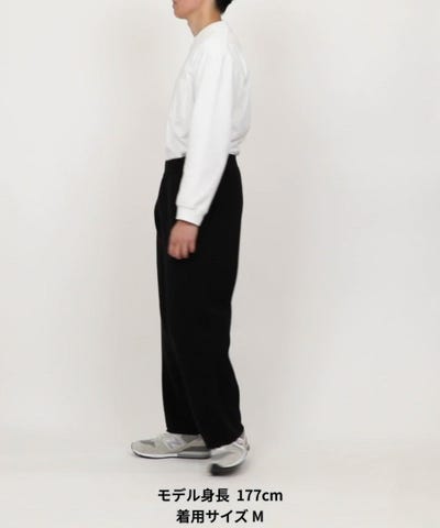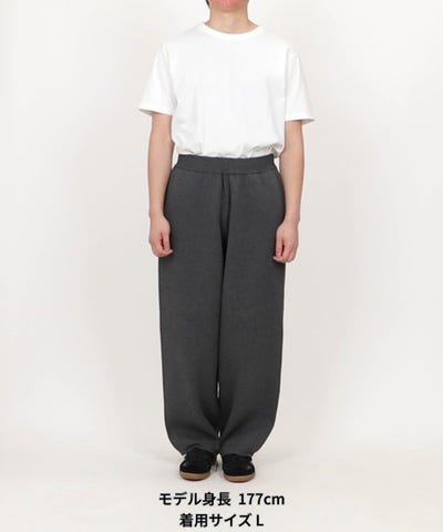 肌離れの良い綿×ポリエステル素材を使用したスウェットライク イージーパンツは、快適な着心地ときれい見えを両立した万能ボトムス。