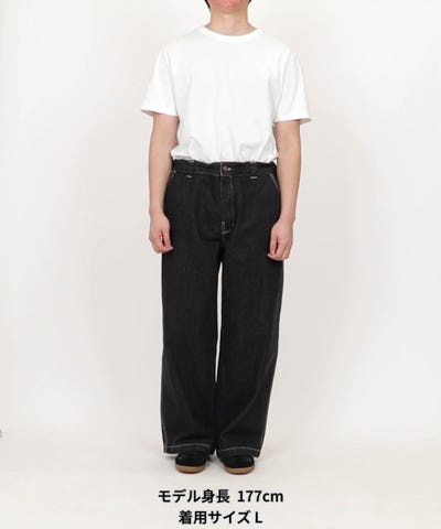 ワイドシルエットを活かし、トップスはややコンパクトにまとめるとメリハリのある着こなしに。足元はローテクスニーカーやレザーシューズ、ボリュームのあるブーツとも好相性。春はライトアウターと合わせて軽快なワークスタイルを楽しめます。