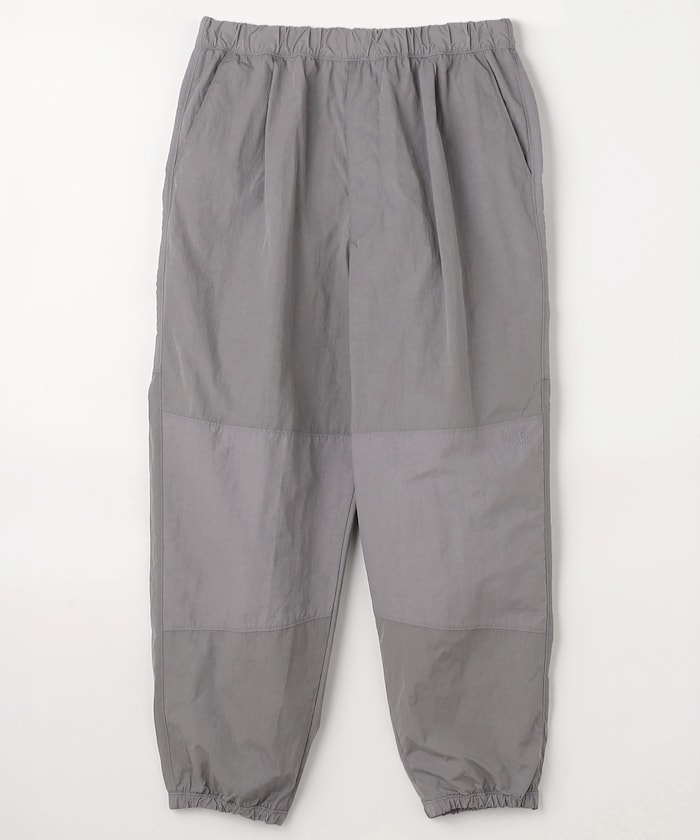 ● 左膝にBerkeleyグラフィック刺繍入り。ワタリにゆとりを持たせ、裾ゴムシャーリングで引き締めたテーパードシルエット