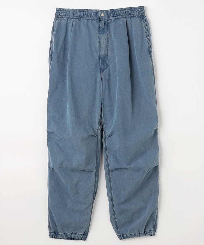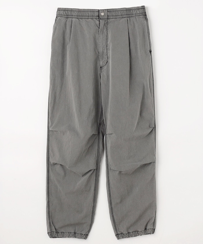 ● ワタリにゆとりを持たせ、裾ゴムシャーリングで引き締めたテーパードシルエットで快適な穿き心地