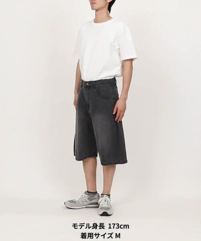 ヴィンテージ加工 カーブ デニム クロップド ショートパンツ