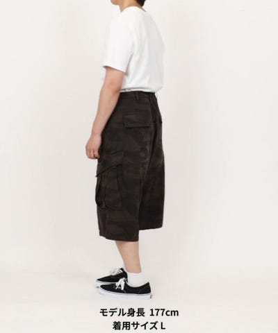 オーバーダイ カモ柄 バギーシルエット カーゴ スリークォーター ショートパンツ