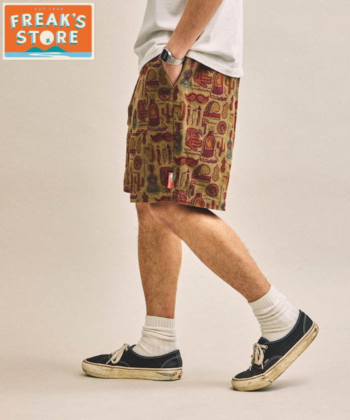 ●細畝コーデュロイ生地に総柄プリントを施した存在感のあるデザイン