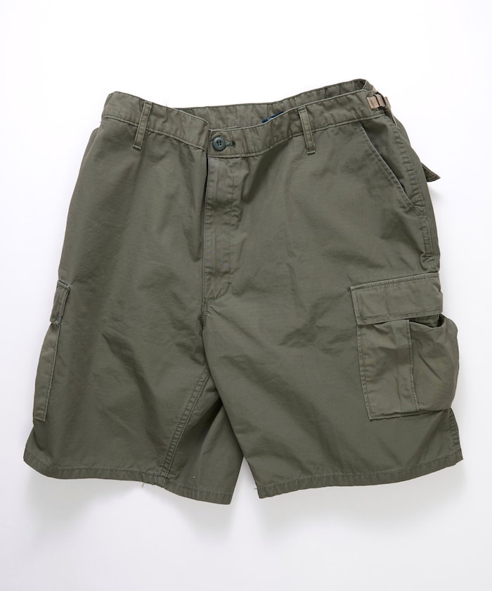 プロッパーの代表的な製品BDUカーゴパンツの機能性をそのままに、夏場の着用に適した丈にアレンジされたショートパンツです。BDUとはBattle Dress Uniformの略で米軍の伝統的なカーゴパンツを忠実に再現しており、高い収納力と摩耗しやすい尻が二重に補強されており、非常にタフな作りです。生地は今では珍しいコットン100%のリップストップ。破れが方眼目で留まる様になっているので破れに強い構造になっています。ウエストサイドのアジャスターでサイズ調整が可能。