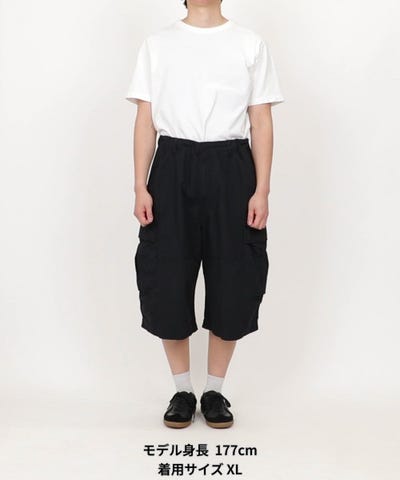ワイドなシルエットながら、リップストップ素材のハリ感が全体を引き締め、ルーズになりすぎない印象に。足元はスニーカーでストリートライクにまとめるのはもちろん、サンダルを合わせれば抜け感のある夏らしい着こなしも楽しめます。