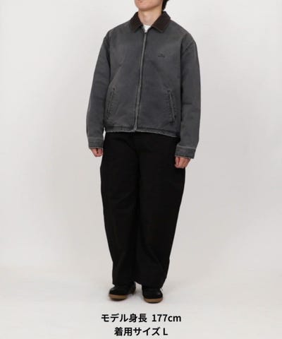 ショート丈のブルゾンなので、スリムデニムやチノパンと合わせるとバランスの良いカジュアルスタイルに。インナーにはシンプルなスウェットやTシャツを重ね、スニーカーでラフにまとめるとストリート感を演出できます。秋口はTシャツの上に羽織って軽アウターとしてもおすすめです。