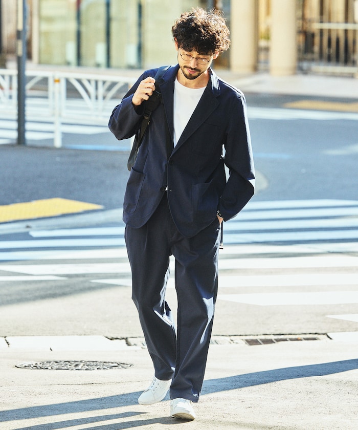 ●SOLOTEX糸を使用したベーシックでシンプルなテーラードジャケットとイージーパンツのセットアップ