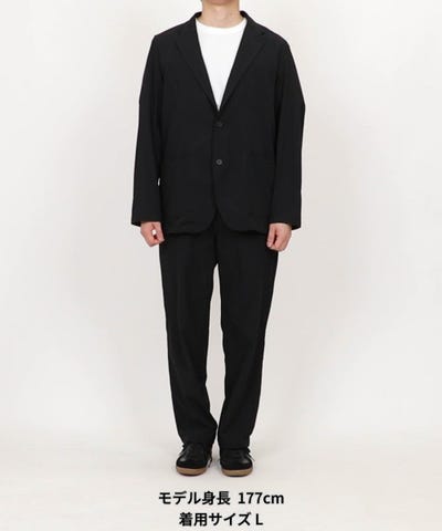 ●ジャケットはベーシックで汎用性の高い2ボタンテーラードデザイン、程よくリラックス感のあるシルエットで、堅すぎない印象に