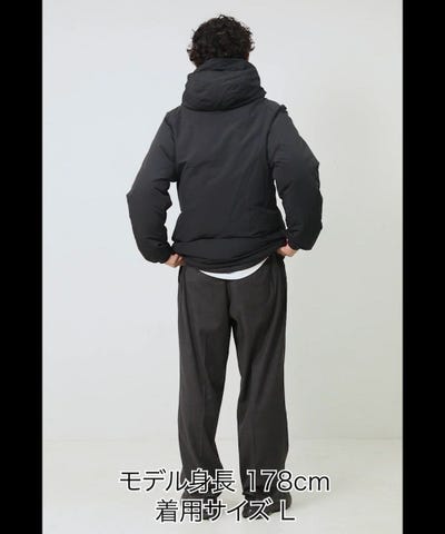 - :表地:ナイロン100% 裏地:ナイロン100% 中綿:ダウン80% フェザー20% リブ部分:ナイロン75% ポリウレタン25%