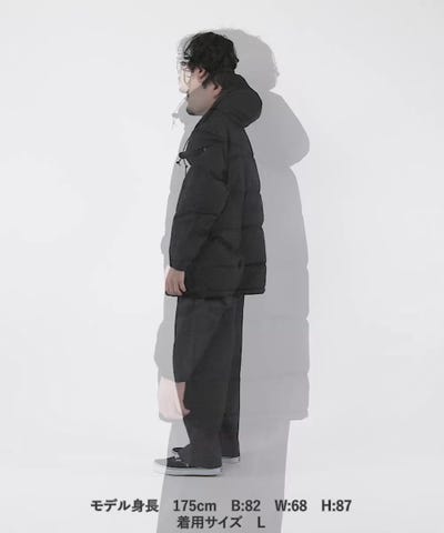 - :表地:ポリエステル65% 綿35% 裏地:ポリエステル100% 中わた:ダウン72% レーヨン20% フェザー8%