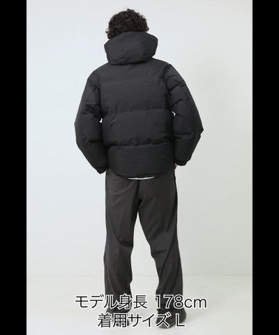 ●定番のフードタイプダウンジャケット。圧着式ダウンパックやサイドのコンシールファスナーポケットなど、テクニカルなディテールを搭載し都会的なデザインに