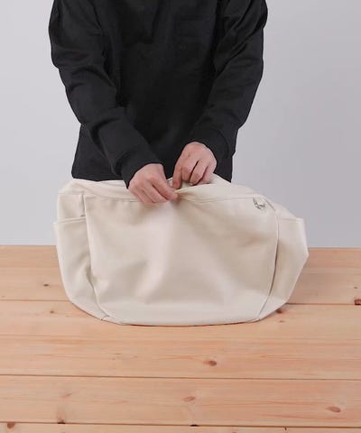●大容量なサイズと、さっと肩掛けできる安定感のあるストラップがポイント