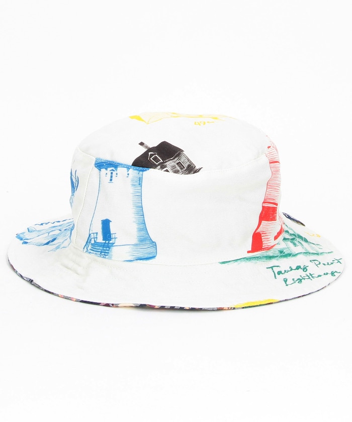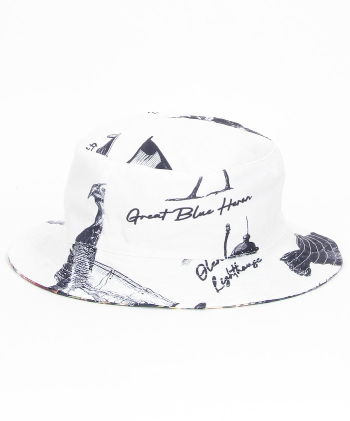●フォトグラフィック調の総柄プリントとマドラスチェック柄を施した、リバーシブルバケットハット