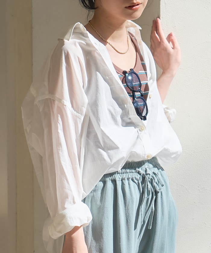 ラフにTシャツやタンクトップに合わせたり、スリーブレスアイテムの冷房対策にもおすすめです。