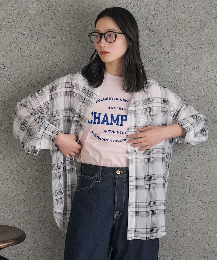 ●カジュアル感の強いチェックシャツですが、程いシアー感と素材感で大人っぽい一着に仕上げています
