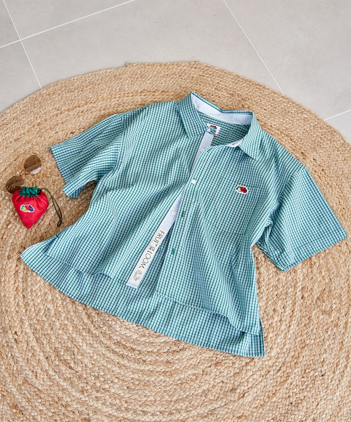●きちんと感のある襟シャツながら、ポケット部分にはフルーツモチーフの刺繍でほどよい抜け感をプラス