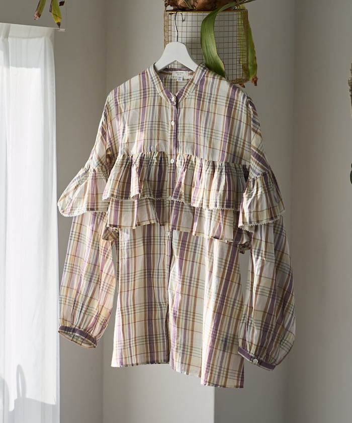 ●段になったフリルデザインが華やかさを添えつつ、甘くなりすぎない大人っぽい印象に