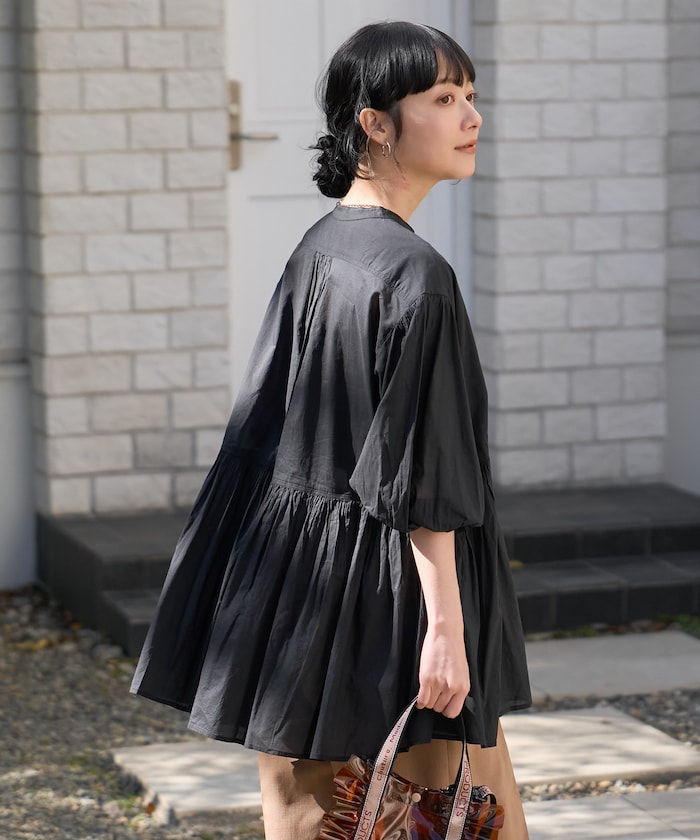 ナチュラルな肌触りのスキッパーブラウス