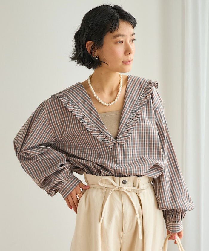 ●春らしいチェック地を使い、女性らしいデザインとカジュアルな素材のバランスが◎