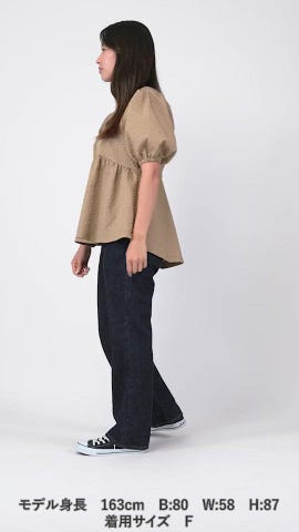 ●凹凸感を出すエンボス加工を施した表情のある生地を使用したパフスリーブトップス