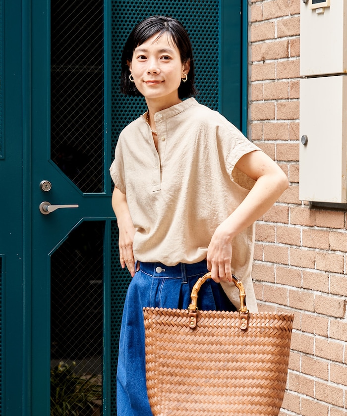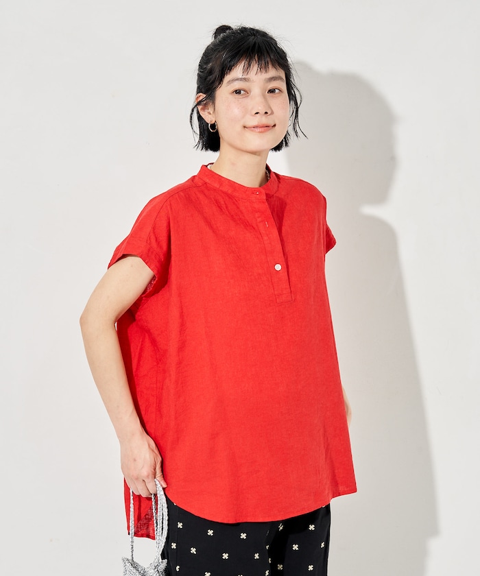 ●落ち感と柔らかさのあるリネンブレンド生地を使用したスキッパーシャツ