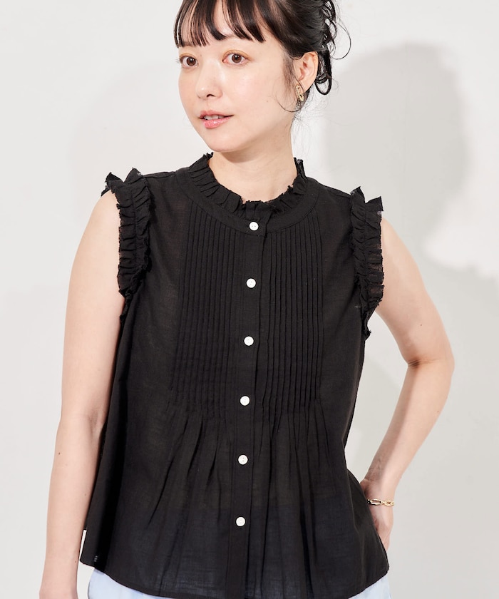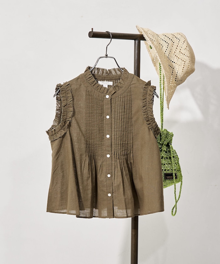 ●ギャザーフリルをふんだんに使った甘めのデザインを、あえてざっくりしたインド綿を使用することでカジュアルダウン