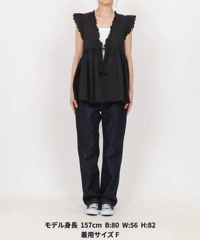 インドコットンならではの軽やかな風合いが魅力のフリルリボンベスト