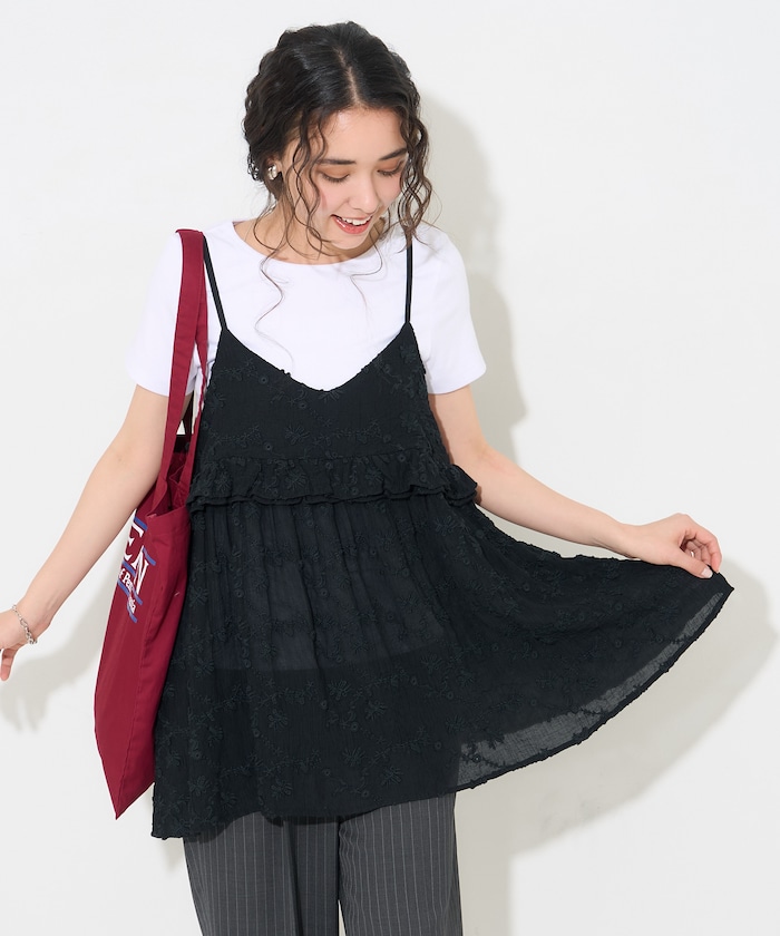 繊細で立体的な3D刺繍が施された、刺繍キャミソール